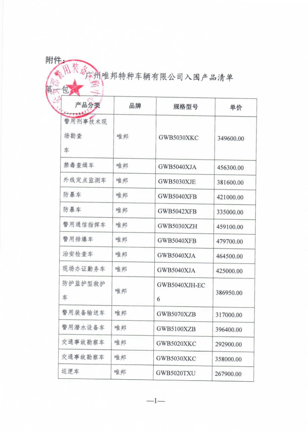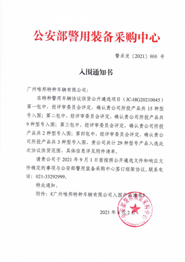 強烈熱鬧慶祝廣州唯邦特種車輛無限公司入圍公安部012警采中間警用特種車輛和談供貨商名錄